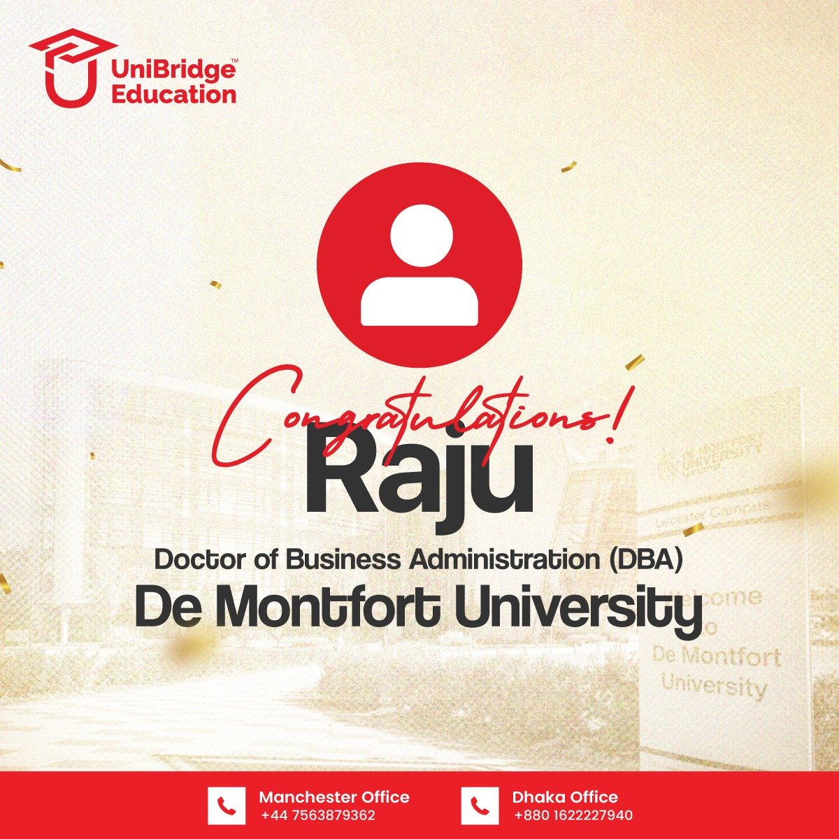 A huge congratulations to Raju on securing a place at De Montfort University for a DBA program. UniBridge Education is proud to have supported him ...